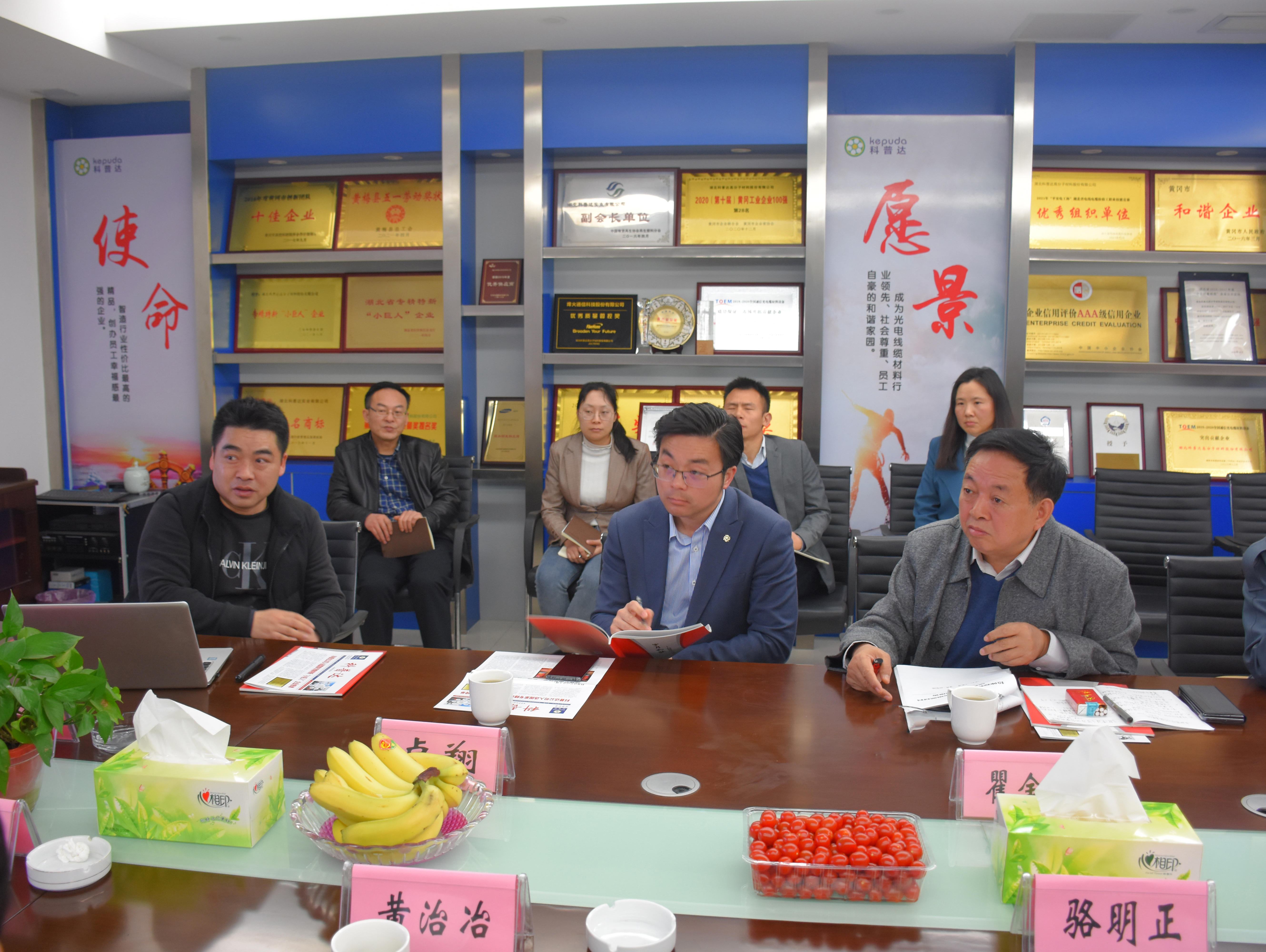 發(fā)布日期:2022/4/12 15:26:02????瀏覽次數(shù):春暖花開一片生機勃勃,4月4日上午中國工程院院士瞿金平以及華中科技大學教授專家等一行蒞臨公司指導交流。黃岡市科協(xié)主席駱明正、黃梅縣委副書記周明、黃梅縣委常委小池濱江新區(qū)黨工委書記黃治冶、縣委組織部副部長王萬舟、黃梅縣科協(xié)主席李小騫等領(lǐng)導參加活動。公司董事長柯斌致歡迎詞,并詳細介紹了公司生產(chǎn)經(jīng)營及相關(guān)項目發(fā)展情況。