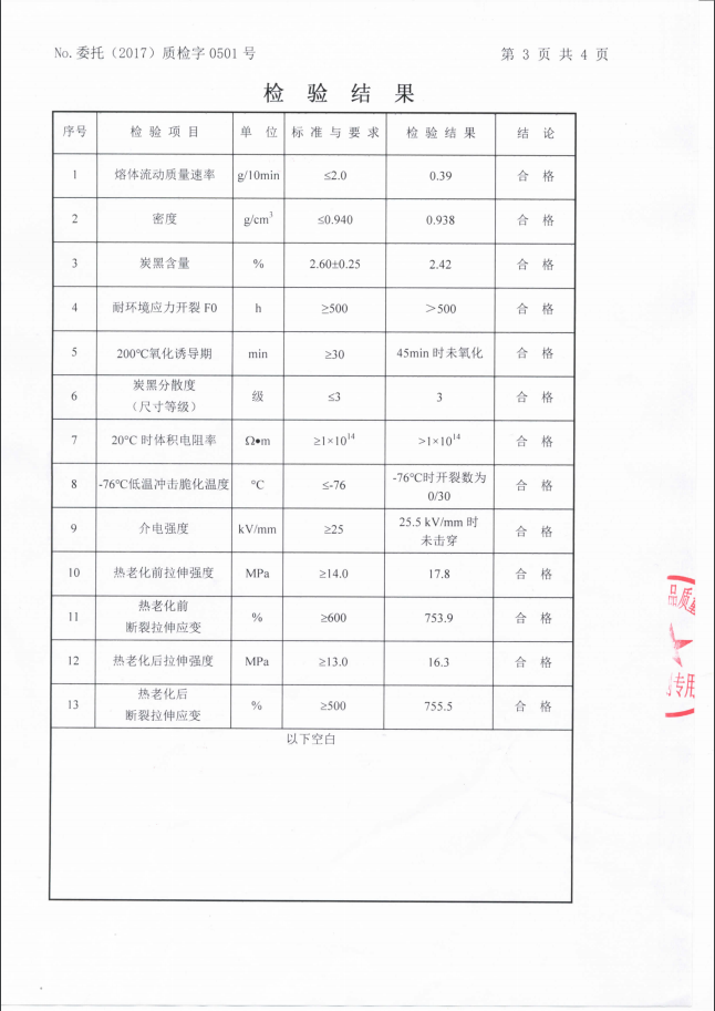 上一篇:紅色高密度聚乙烯護套料檢測報告17.3